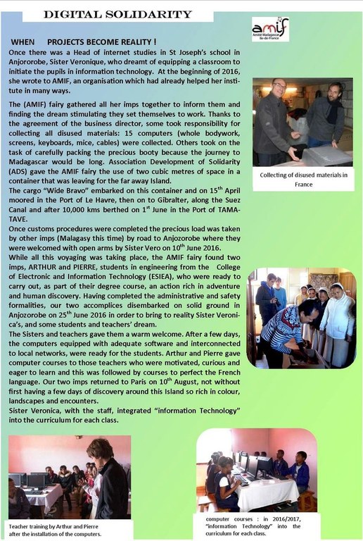 ... computers from France have been installed by three trainees from a school of information technology... ''Misaotro !''